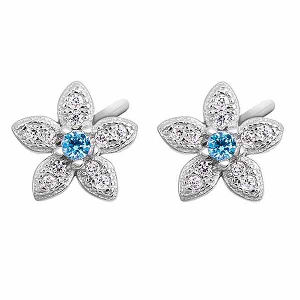 Hopeakorvakorut kukka vaaleansininen zirkonia