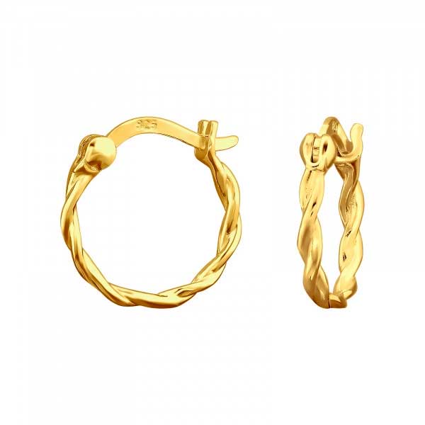 Kauniit kullatut hopeakorvarenkaat tyylikkäällä kierteisellä muotoilulla. Hopeakorvarenkaiden leveys on 1,2 mm ja ulkohalkaisija 15 mm. Korvakoruissa on kätevä saranakiinnitys. Korvakorujen valmistusmateriaali on laadukas nikkelitön 925 sterling hopea. Hopeiset rengaskorvakorut sopivat erinomaisesti jokapäiväiseen käyttöön!