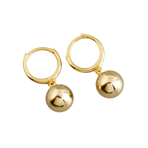 Kullatut hopeakorvarenkaat roikkuvilla palloilla. Korvakorun kokonaiskorkeus roikkuvan pallon kanssa on noin 23 mm. Korvarenkaan ulkohalkaisija on noin 11 mm. Saranakiinnitys.
