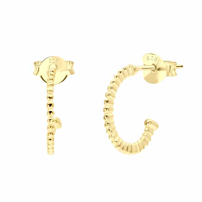 Kullatut korvarenkaat pallokuvioidulla pinnalla. Korvakoruissa on tappikiinnitys. Korvakorujen halkaisija on 13,5 mm. Sirot ja kevyet rengaskorvakorut, joita voi käyttää arjessa! Korvakorujen valmistusmateriaali on laadukas nikkelitön 925 sterling hopea.