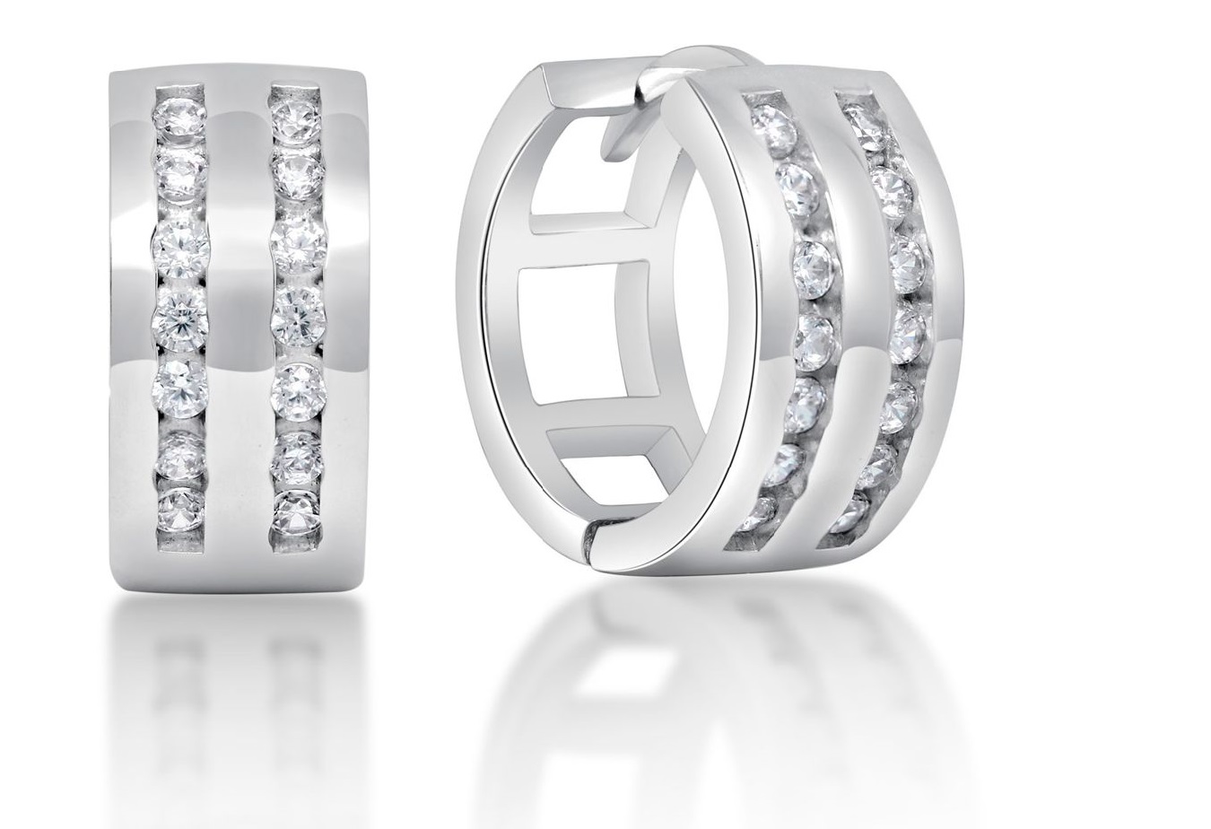 Tyylikkäät hopeiset renkaat kahdella rivillä säihkyviä zirkoneita. Materiaali 925 sterlinghopea, kiinnitystapa sarana. Sopivat niin arkeen kuin juhlaan!