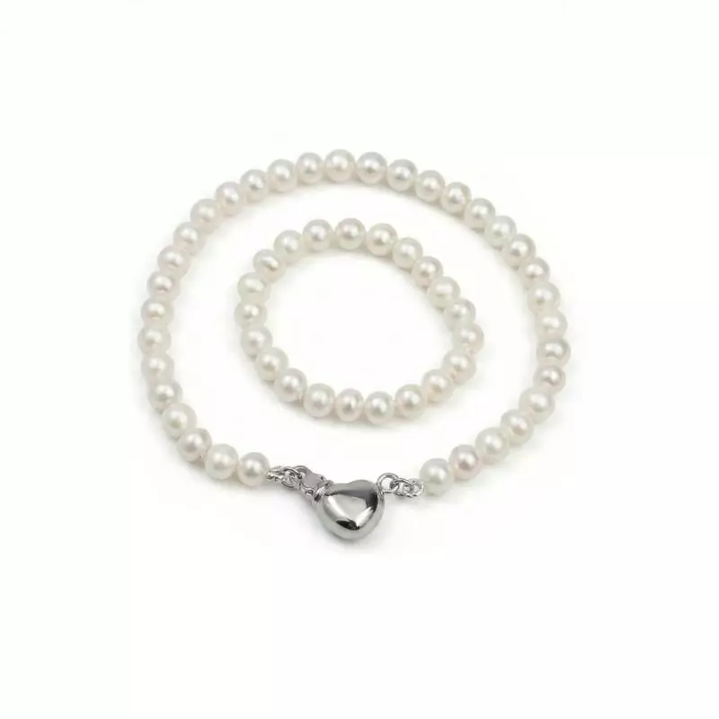 Klassinen valkoinen kastehelmirannekoru on ajaton valinta ristiäis- tai nimiäislahjaksi. Koru koostuu korkealaatuisista 4-4,5 mm makeanveden helmistä ja se on viimeistelty rodinoidulla hopeisella sydänlukolla. Sydänlukko on noin 8 mm kokoinen, ja se on helppo ja varma käyttää pienessä ranteessa. Rodinoitu pinta takaa sen, että hopea säilyttää kauniin vaalean hohtonsa vuodesta toiseen.