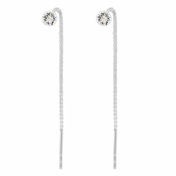 Hopeiset läpi vedettävät ketjukorvakorut kirkkailla zirkoneilla