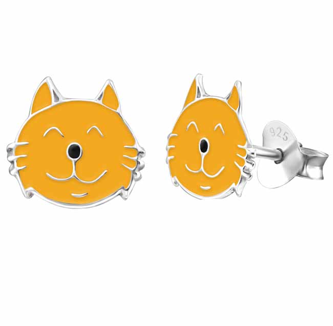 Iloiset oranssit kissa-hopeakorvakorut Lasten kissa-hopeakorvakorut. Suloiset lasten hopeiset kissa-korvakorut. Korvakoruissa on luotettava tappikiinnitys. Korvakorujen koko on 9 x 9 mm. Sirot ja... Lue lisää