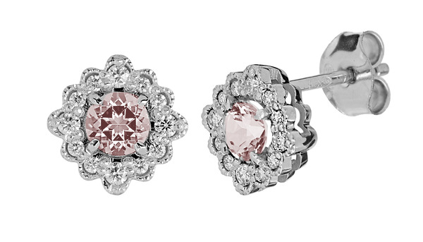 Valkokultaiset timanttikorvakorut ihastuttavilla vaaleanpunaisilla topaaseilla. Nämä sievät, mutta samalla näyttävät korvakorut on valmistettu lähes 100% kierrätetystä 14 karaatin valkokullasta. Kierrätetty kulta ei ole ainoastaan kaunis vaan myös ekologinen ja ympäristöystävällinen korumateriaali. Korvakoruissa on käytännöllinen ja helppo tappikiinnitys. Yhdessä korussa on yhteensä 12 säkenöivää timanttia (yhteispaino 0,08 ct) sekä 4 mm leveä vaaleanpunainen topaasi. Yhteensä korvakoruissa on timantteja 24 kappaletta ja niiden yhteispaino on 0,16 ct.