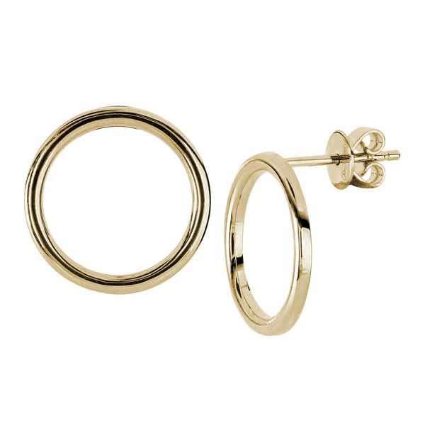 Kohinoor keltakultaiset Deco-korvakorut. Klassiset kehän muotoiset kultaiset korvakorut, joiden koko on 14 mm. Näissä nappikorvakoruissa on tukeva ja luotettava tappikiinnitys.
