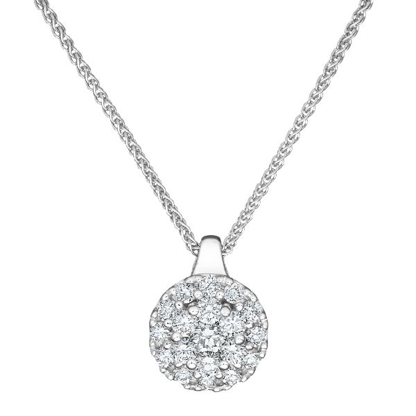 Kaunis ja säkenöivä valkokultainen timanttiriipus. Kotimainen Kohinoor Dharma timanttiriipus on valmistettu lähes 100% kierrätetystä valkokullasta. Kierrätetty kulta ei ole ainoastaan kaunis vaan myös ekologinen ja ympäristöystävällinen korumateriaali. Ympyränmuotoisen koruosan halkaisija on noin 7,6 mm ja koruosassa on yhteensä 19 säkenöivää kukan muotoon istutettua timanttia. Timanttien yhteispaino on 0,28 ct. Riipuksen ketjun pituus on säädettävä 38/40/42 cm, joten se sopii moneen kaulaan.