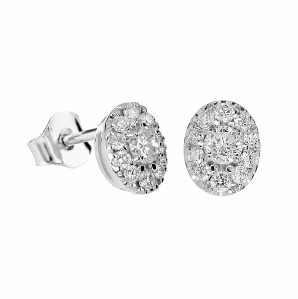 Näiden ovaalin muotoisten Kohinoor halotimanttikorvakorujen keskikivinä ihastuttavat 0,10 ct kokoiset timantit. Molempien korvakorujen timanttien yhteispaino on 0,44 ct.