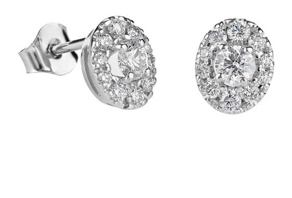 Olivia-korvakoruissa on keskellä pyöreä briljanttihiottu timatti, jonka ympärillä on ovaaliin muotoon istutetut timantit. Timanttien yhteispaino korvakoruissa on 0,72 c.