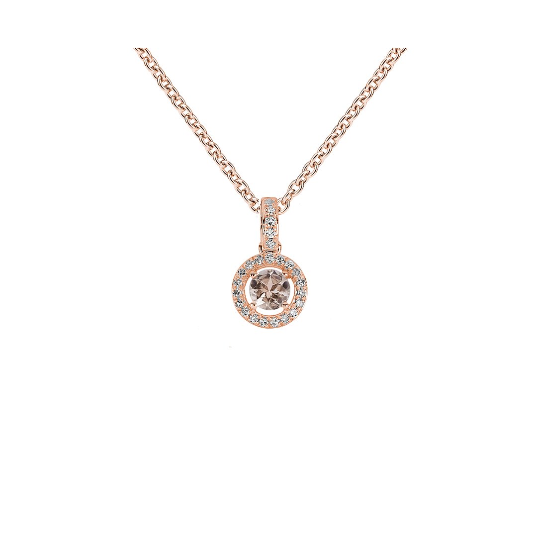 Ihanan hempeä ruusukultainen timanttiriipus lämminsävyisellä morganiitilla
