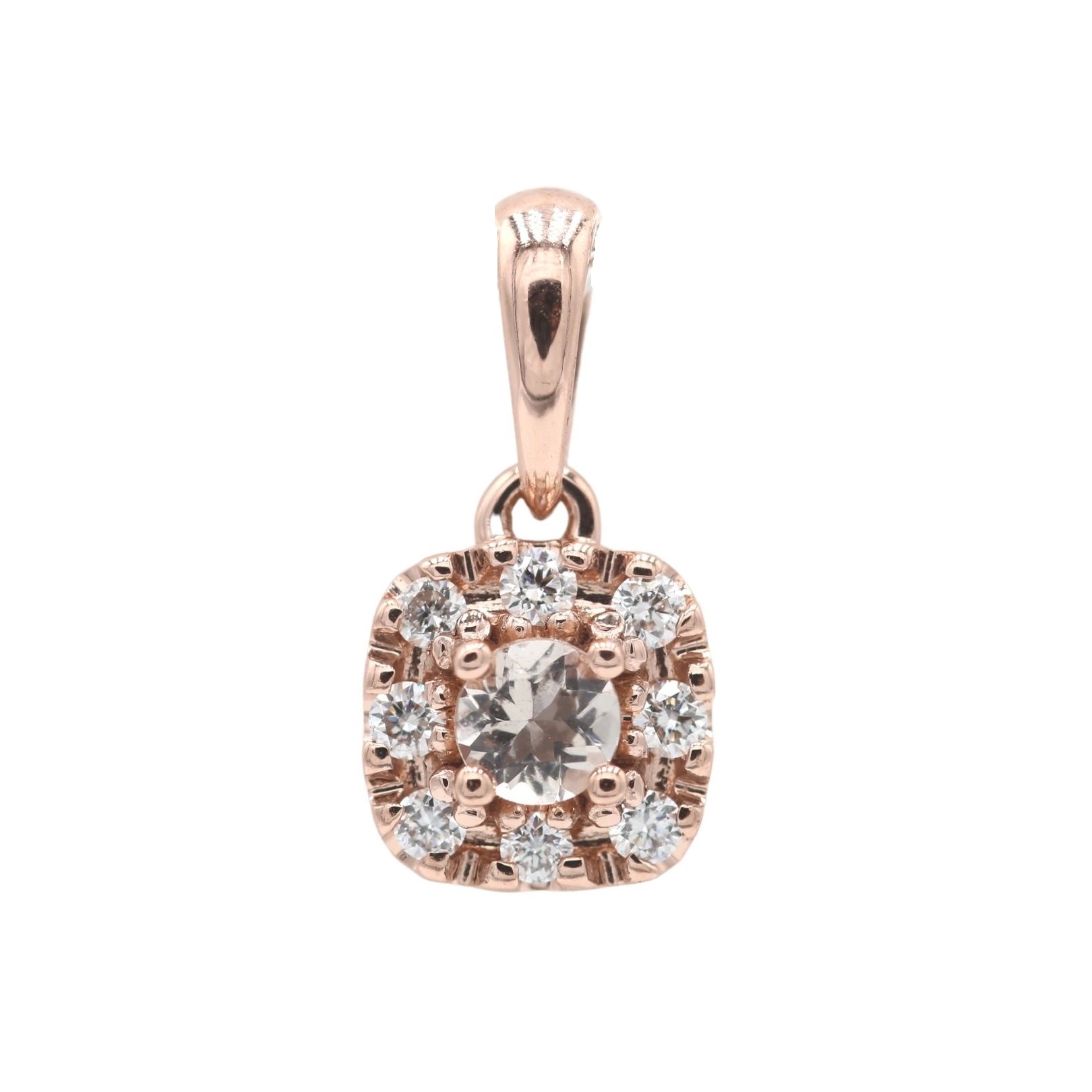 Punakultainen timanttiriipus on valmistettu 14 karaatin punakullasta. Riipuksessa on timantteja 8 kappaletta yhteispainoltaan 0,08 ct. Keskikiveksi riipukseen on istutettu 3 mm morganiitti. Tämä timanttiriipus toimitetaan ilman ketjua eli voit joko hyödyntää olemassa olevaa riipusketjuasi tai vaihtoehtoisesti valita riipukseen sopivan ketjun meidän riipusketjuvalikoimastamme.