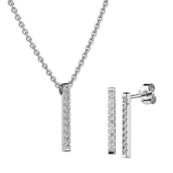 Kaunis timanttikorusetti, joka sisältää Kohinoor Valerie timanttiriipuksen ja timanttikorvakorut. Korut on valmistettu lähes 100% kierrätetystä 14 karaatin valkokullasta. Kierrätetty kulta ei ole ainoastaan kaunis, vaan myös on ekologinen ja ympäristöystävällinen korumateriaali. Näitä koruja somistaa säkenöivien timanttien rivit. Setissä olevissa korvakoruissa on käytännöllinen ja helppo tappikiinnitys. Setissä oleva riipus sisältää hopeaketjun, jonka pituuden voit valita useista eri vaihtoehdoista. Voit myös tilata tämän korusetin kokonaan ilman ketjua.Timanttikorusetti toimitetaan valmistajan alkuperäisessä rasiassa.
