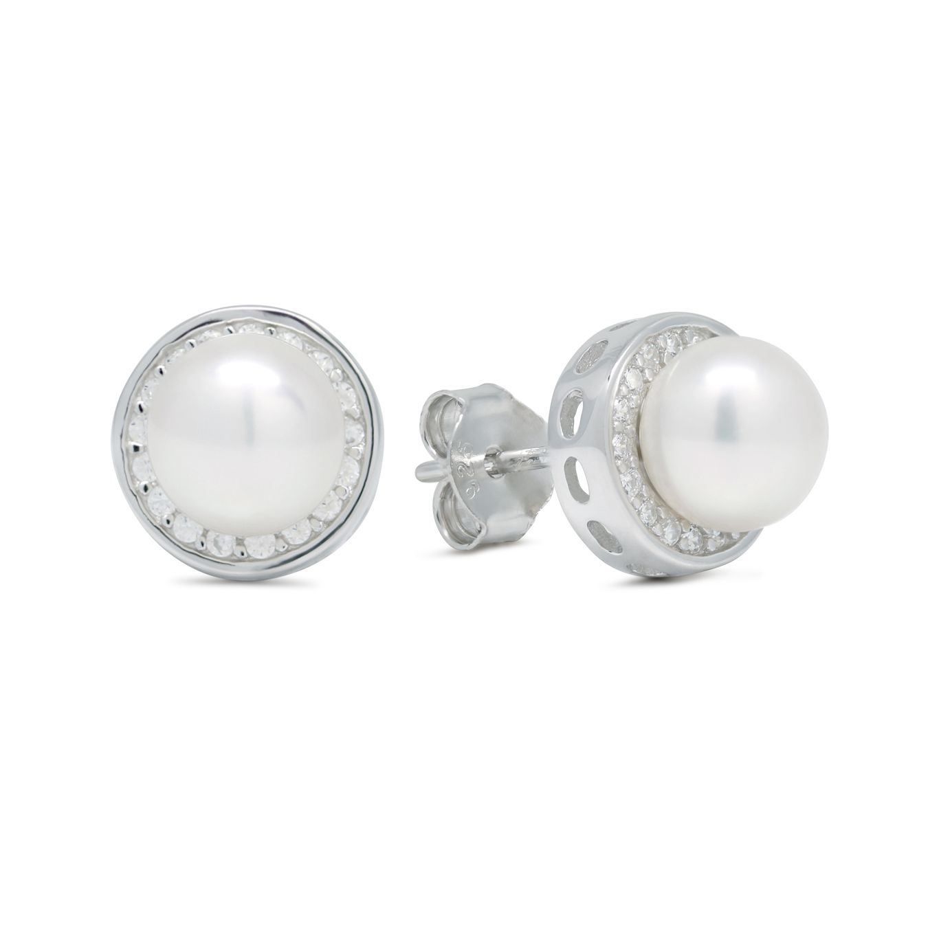 Hopeakorvakorut kirkkailla zirkoneilla ja makean veden helmellä.