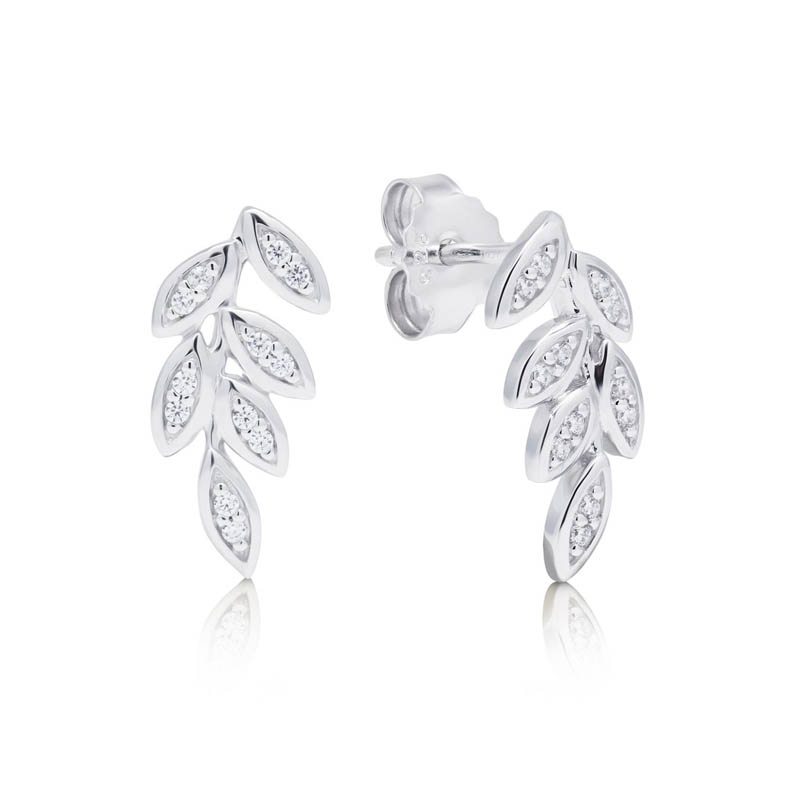 Beat of Love lehtikorvakorut zirkoneilla. - 925/1000 sterlinghopeaa - Synteettiset zirkonit - Koruosan korkeus 15,5 mm - Leveys 7 mm
