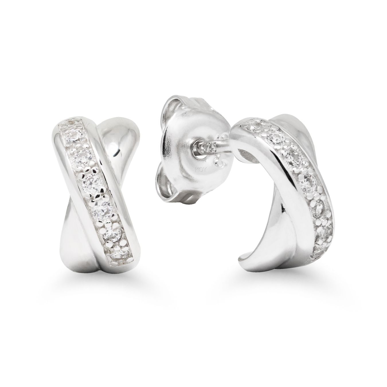 Hopeakorvakorut ristiin menevä puolikaari zirkoneilla. - 925/1000 hopeaa, rodinoitu - korkeus 10,2 mm - leveys 5,3 mm