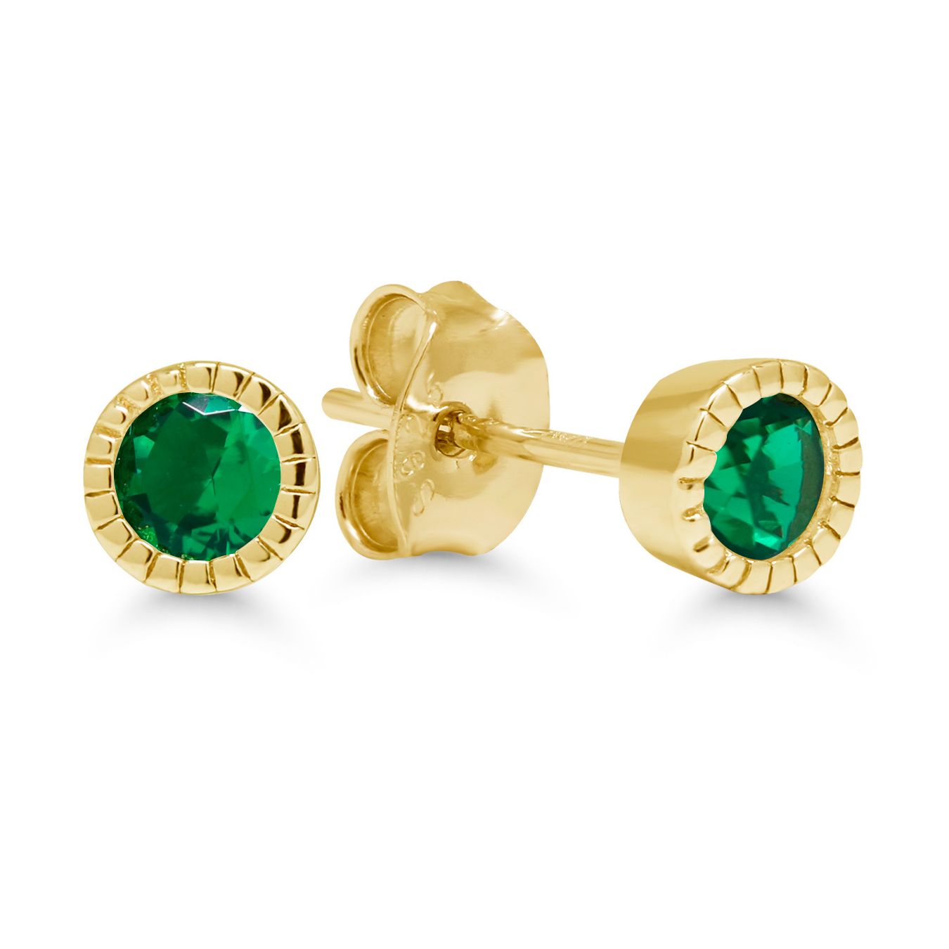 Klassiset pyöreät kullatut hopeakorvakorut krysanttireunuksella ja vihreillä kivillä.