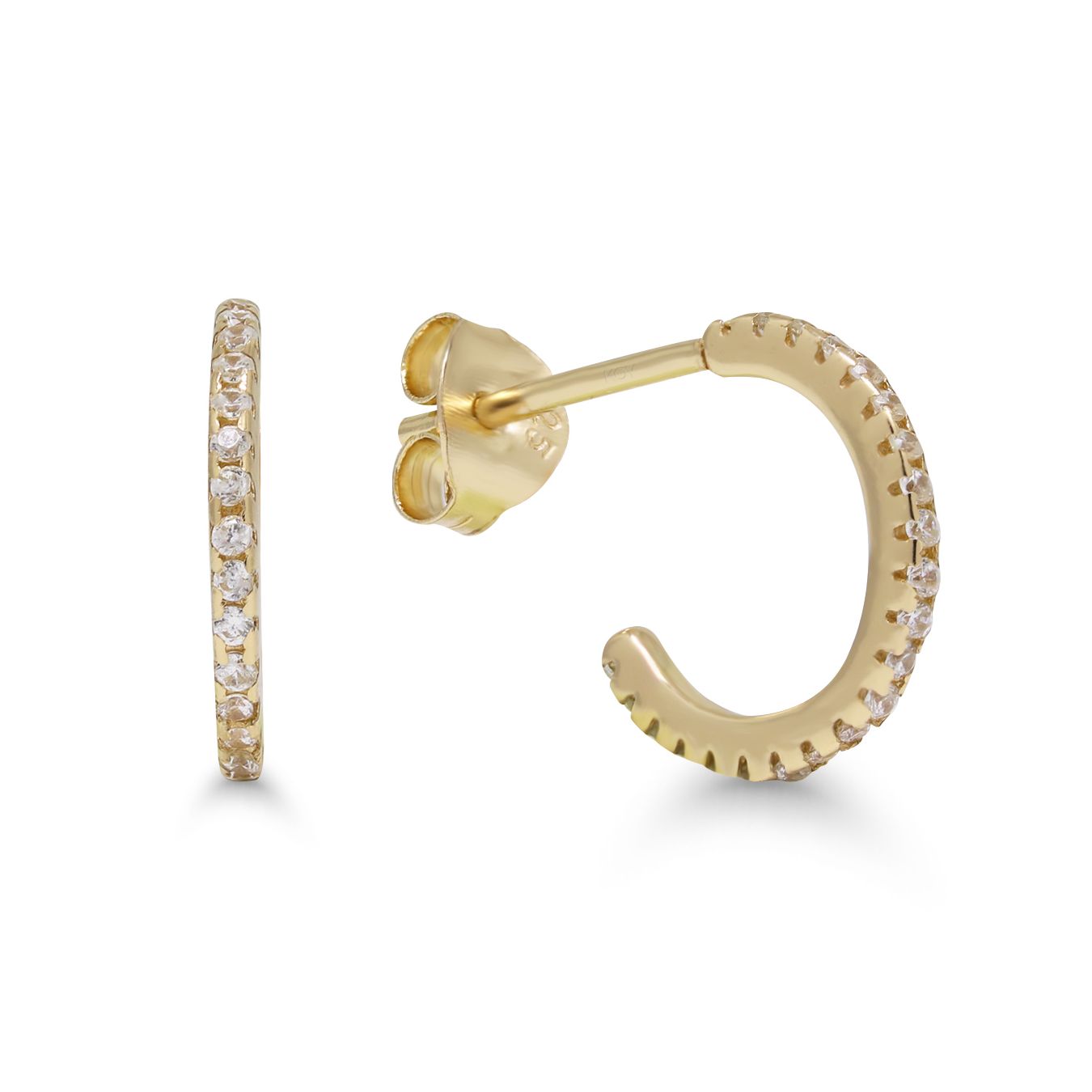 Siron pienet keltakullatut hopeakorvarenkaat tappikiinnityksellä.