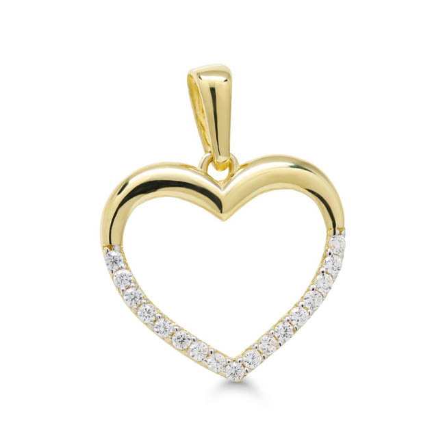 Keltakultariipus avosydän zirkoneilla - materiaali: 585/1000 (14k) keltakultaa - synteettiset zirkonit - korkeus 12 mm (ilman riipuslenkkiä), 18mm kokonaisuudessaan - leveys 14,25 mm... Lue lisää