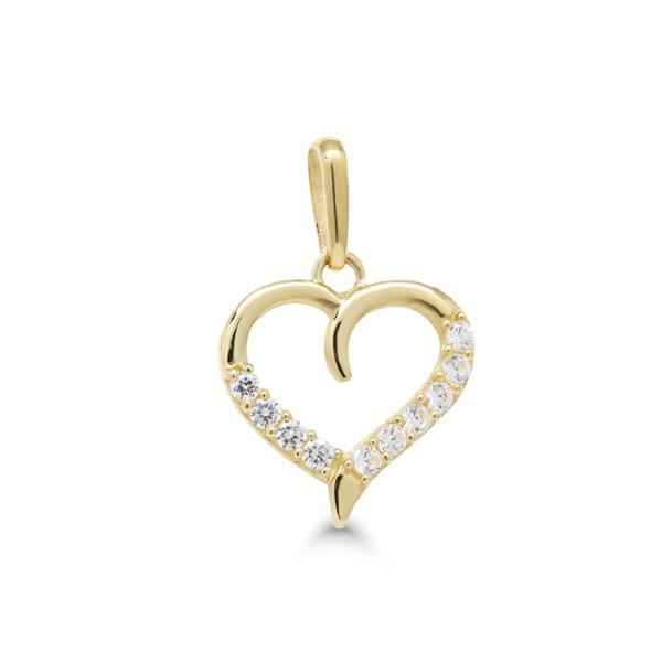 Keltakultariipus sydän zirkoneilla - materiaali: 585/1000 (14k) keltakultaa - korkeus 9,2mm (ilman riipuslenkkiä), 15,2mm kokonaisuudessaan - leveys 10,4mm
