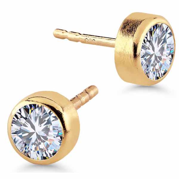 Korutuote Kultakorvakorut Kirkkaat Zirkonit SA-0206/05Z Materiaali: 14K keltakulta Koko: 5 mm Synteettiset zirkonit Tappikiinnitys