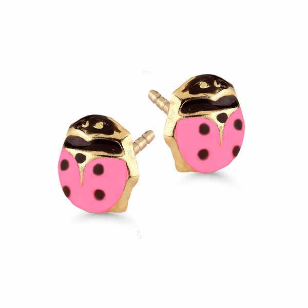 Kultakorvakorut leppäkerttu -585/1000 (14k) keltakultaa -Kiiltävä pinta -Pink/musta emalointi -Korkeus 5,5mm