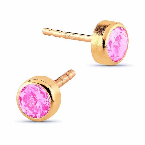 Korutuote Kultakorvakorut Pinkit Zirkonit SA-0206/04pink Materiaali: 14K keltakulta Koko: 4 mm Synteettiset zirkonit Tappikiinnitys