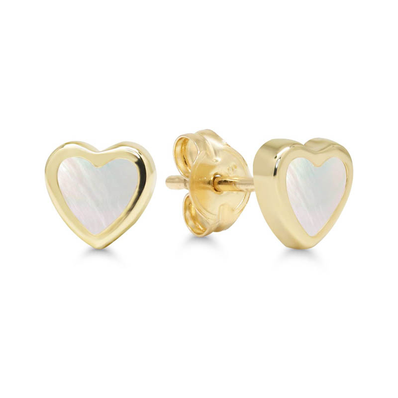 Sirot pienet 5,7 mm helmiäinen sydän korvakorut keltakultaa - 585/1000 (14k) keltakultaa - helmiäinen - leveys 5,7 mm - korkeus 5,5 mm