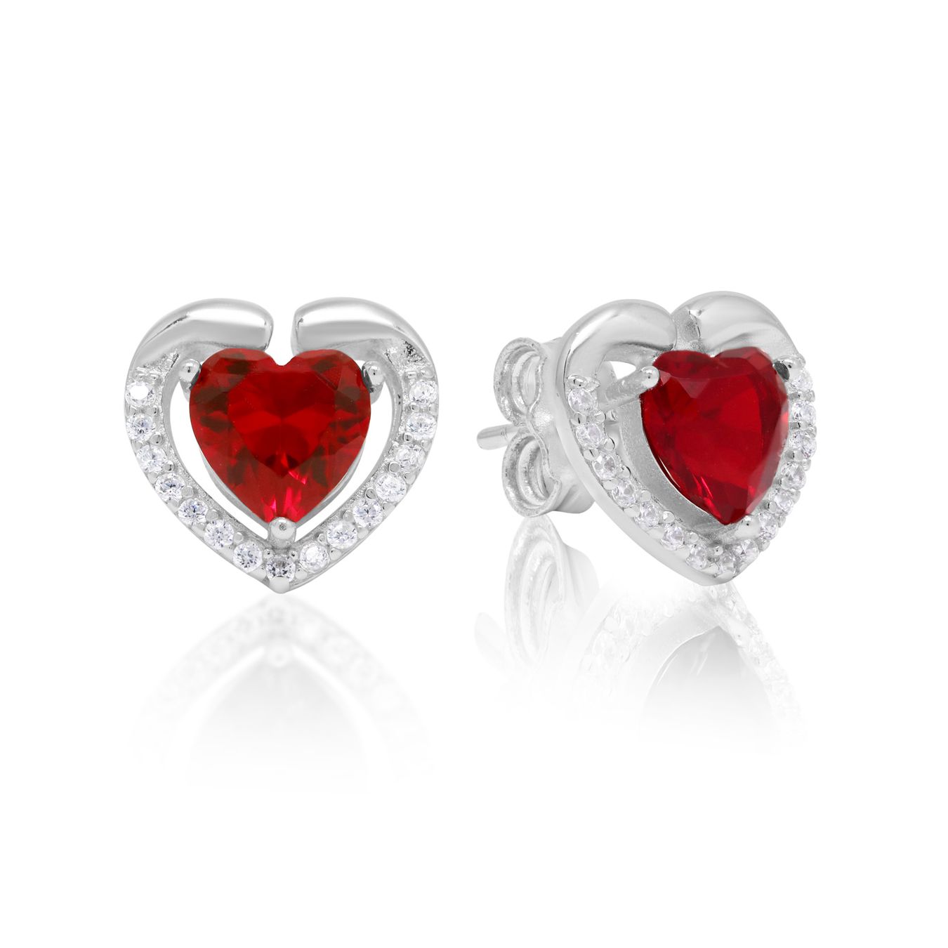 Hopeakorvakorut sydän punaisella ja kirkkailla zirkonikivillä. - 925 hopeaa, rodinoitu - Synt.zirkonit - Leveys 10,5 mm - Korkeus 10 mm