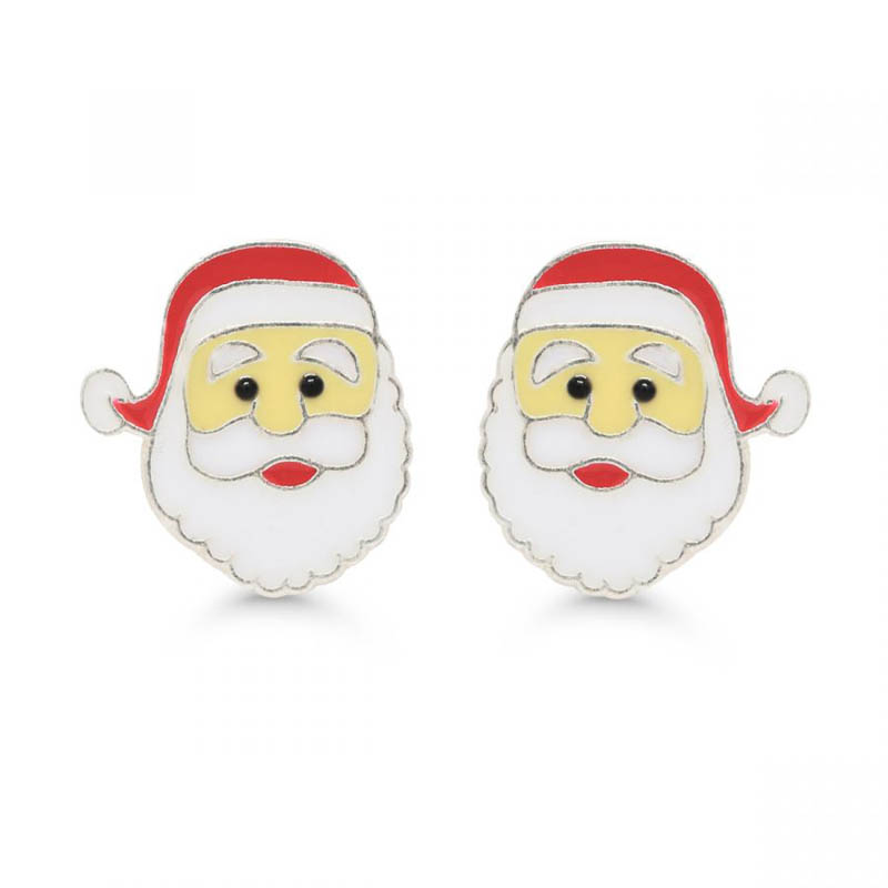 Suloiset joulupukki-hopeakorvakorut emaloitua 925 sterling-hopeaa. Tappikiinnitys. Erinomainen ja hauska joululahja, sopivat myös tuomaan joulun iloa joulun aikaan!