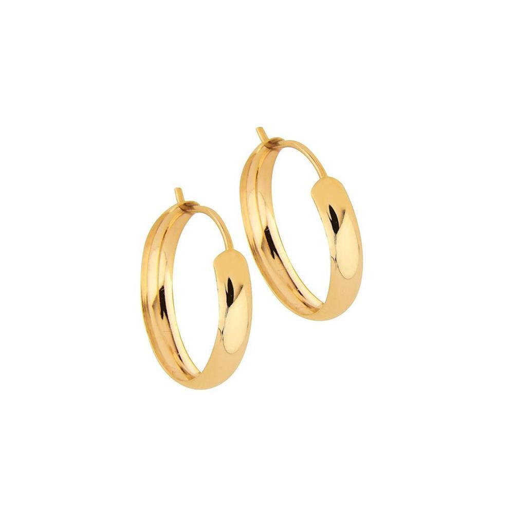 Keltakultaiset rengaskorvakorut, joiden halkaisija on 15 mm.