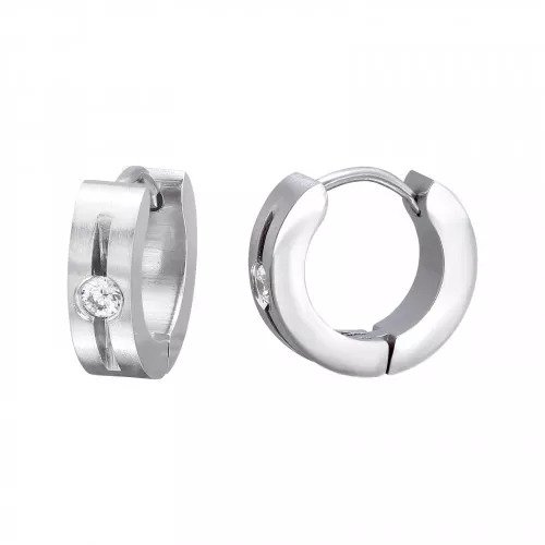 Teräskorvarenkaat zirkonialla. Nämä teräksiset korvarenkaat ovat halkaisijaltaan 14 mm ja leveydeltään 4 mm. Rengaskorvakorujen valmistusmateriaali on laadukas ja kestävä ruostumaton teräs eli kirurginteräs. Korvarenkaissa on kätevä saranakiinnitys. Klassisen malliset saranakorvakorut sopivat niin miehelle kuin naisellekin!