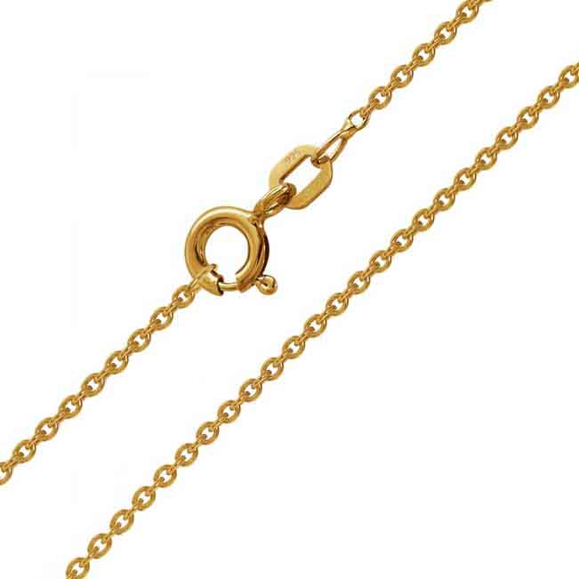 Hopeinen kullattu riipusketju, jonka leveys on 1,35 mm. Ankkuriketju on panssariketjun ohella kaikista yleisin ketjumalli, ja se sopii moneen tyyliin ja monelle erilaiselle riipukselle. Ketjun valmistusmateriaali on laadukas nikkelitön 925 sterling-hopea. Ketju on keltakullattu. Kullatun ketjun pituus on valittavissa oman mieltymyksesi mukaan väliltä 38-60 cm. Lasten hopeaketjujen tai lyhyiden naisten hopeaketjujen pituus on 38 cm, naisten ketjujen peruspituudet ovat 42 cm, 45 cm ja 50 cm ja miesten ketjujen peruspituudet 50 cm, 55 cm ja 60 cm.