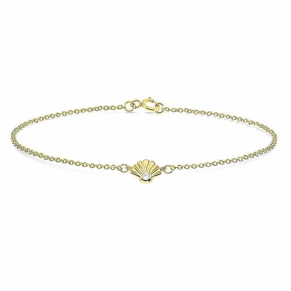 Kullattu simpukka-rannekoru Naisten hopeinen kullattu rannekoru sirolla simpukankuori-helalla, jota korista kirkas säkenöivä zirkonia. Koruosan koko on 8 x 2 mm. Ranneketjun pituus on 18 cm.... Lue lisää