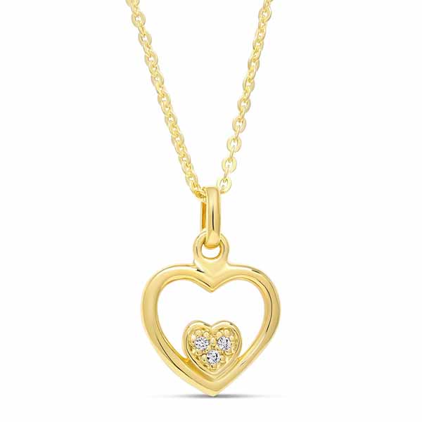 Sydämen muotoinen kullattu hopeakaulakoru kirkkailla zirkonia-korukivillä. Kullattu hopeaketju on kätevästi säädettävissä pituuksiin 40-45 cm. Valmistusmateriaali on 925 sterling-hopea.