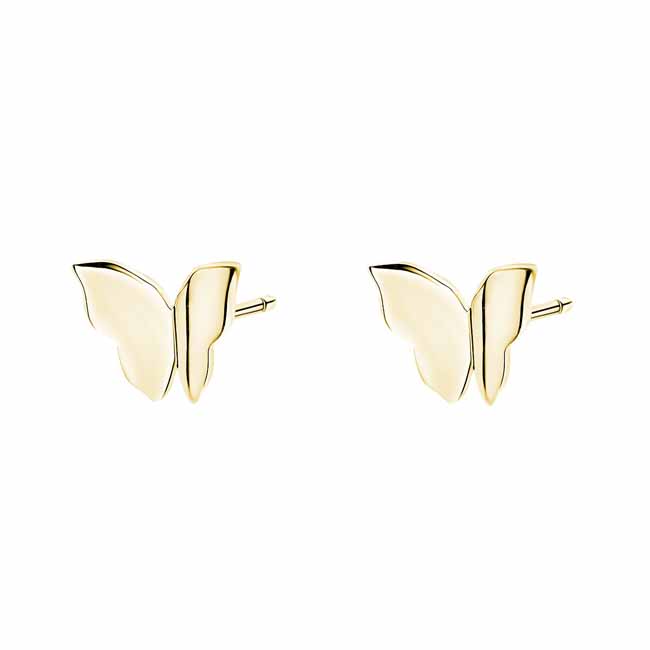 Kullatut hopeakorvakorut perhonen Kullatut hopeiset perhoskorvakorut kiiltävällä pinnalla. Nappikorvakorujen koko on 7 x 9 mm ja niissä on luotettava tappikiinnitys. Valmistusmateriaali on... Lue lisää