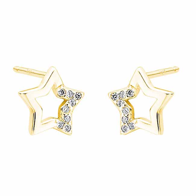 Kullatut hopeiset tähtikorvakorut. Nämä klassisen kauniit tähden muotoiset hopeakorvakorut sopivat niin lapselle kuin aikuisellekin! Korvakorut on koristeltu kirkkain zirkoni-korukivin. Korvakoruissa on luotettava tappikiinnitys. Korvakorujen koko on 9 x 9 mm. Sirot ja kevyet nappikorvakorut, joita voi käyttää arjessa! Korvakorujen valmistusmateriaali on laadukas nikkelitön 925 sterling hopea.