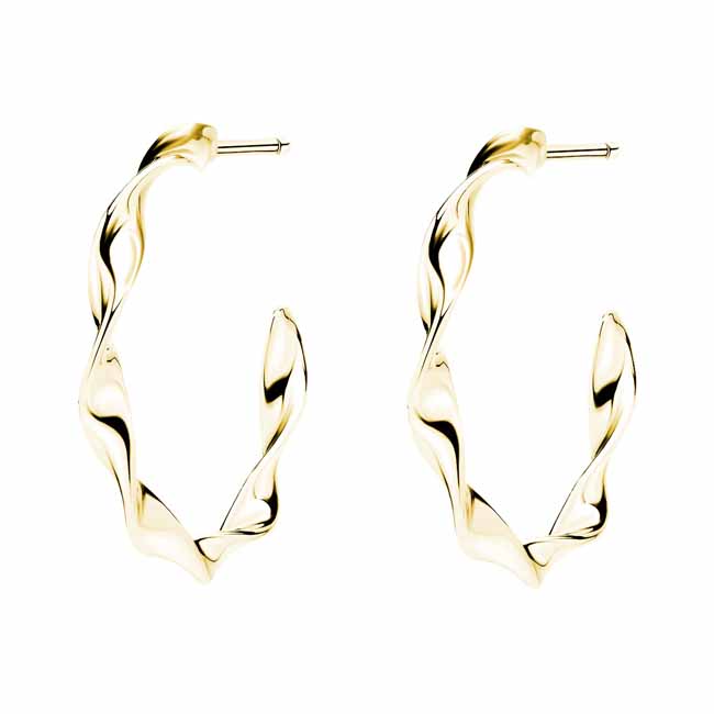 Näyttävät kullatut hopeiset korvarenkaat tyylikkäällä kierteellä. Korvakoruissa on tappikiinnitys. Korvarenkaiden halkaisija on 25 mm. Sirot ja kevyet rengaskorvakorut, joita voi käyttää arjessa! Korvakorujen valmistusmateriaali on laadukas nikkelitön 925 sterling hopea.