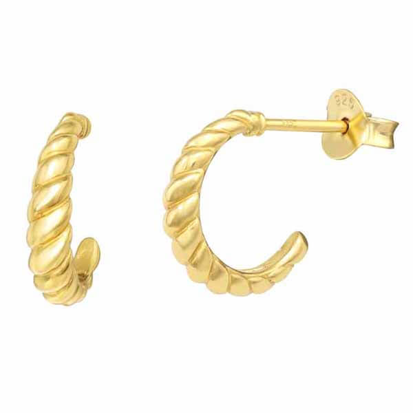 Kullatut hopeiset korvarenkaat tyylikkäällä kierteellä. Korvakoruissa on tappikiinnitys. Korvarenkaiden leveys on 3 mm ja halkaisija on 12 mm. Sirot ja kevyet rengaskorvakorut, joita voi käyttää arjessa! Korvakorujen valmistusmateriaali on laadukas nikkelitön 925 sterling hopea.