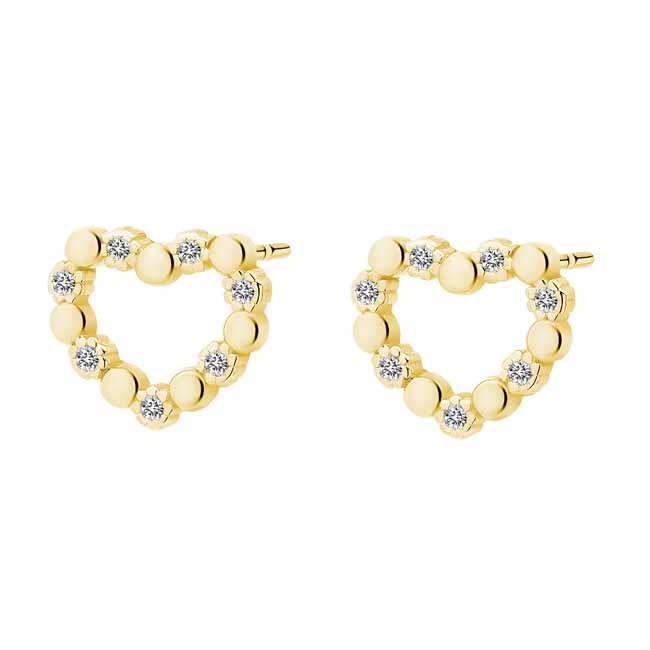 Kullatut sydämen muotoiset hopeakorvakorut. Nämä kauniit sydänkorvakorut sopivat niin lapselle kuin aikuisellekin! Korvakorut on koristeltu zirkoni-korukivin. Korvakoruissa on luotettava tappikiinnitys. Korvakorujen koko on 8 x 9 mm. Sirot ja kevyet nappikorvakorut, joita voi käyttää arjessa! Korvakorujen valmistusmateriaali on laadukas nikkelitön 925 sterling hopea.