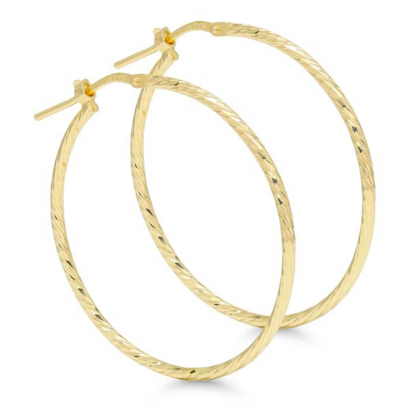 Timanttileikatut kullatut hopeakorvarenkaat 34mmx1,4mm