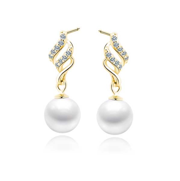 Roikkuvat kullatut helmikorvakorut zirkoneilla