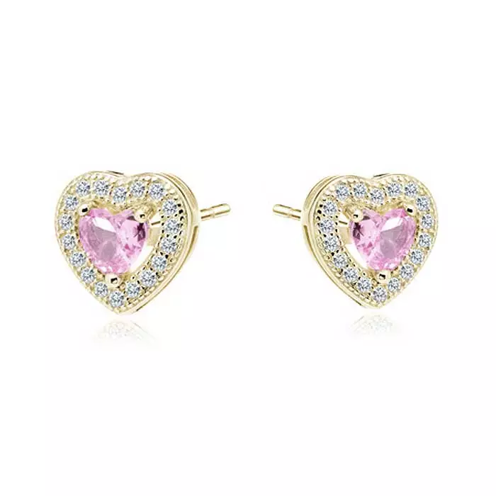 Kullatut sydänkorvakorut zirkoneilla Kullatut hopeiset sydämen muotoiset korvakorut. Näitä hopeisia sydänkorvakoruja koristavat pinkit zirkoni-korukivet. Nappikorvakorujen koko on 8 x 8 mm ja... Lue lisää