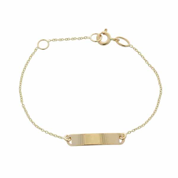 Lasten 14 karaatin keltakullasta valmistettu ranneketju. Rannekorun keskellä on pieni kultalaatta. Rannekoruun on valittavissa kaiverruspalvelu. Säädettävissä pituuksiin 12/14 cm.