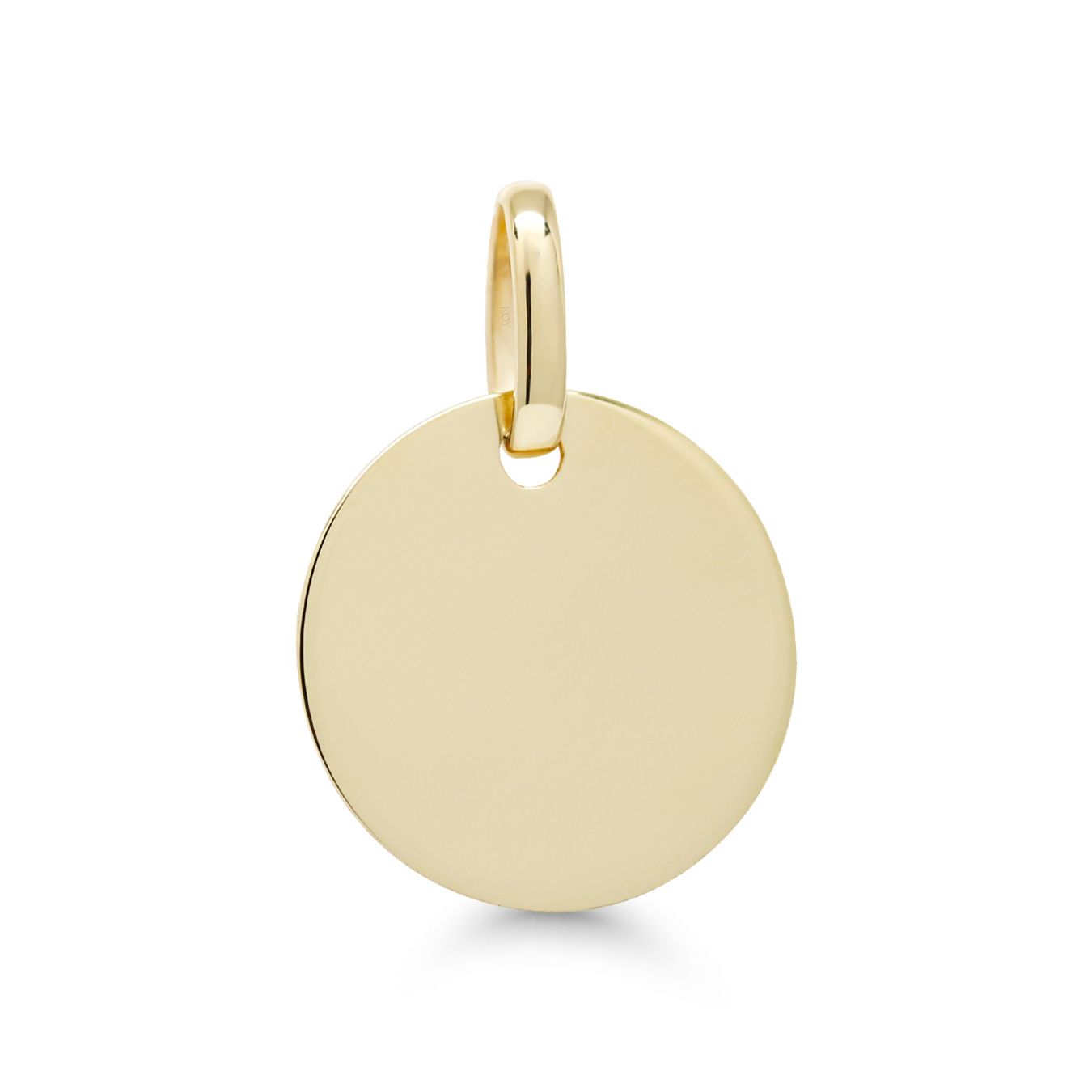 Keltakultainen sileä laattariipus 12mm. - materiaali: 585/1000 (14k) keltakultaa - laatan halkaisija 12mm - riipuksen korkeus 17mm riipuslenkin kanssa