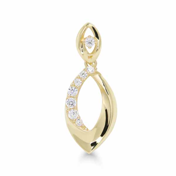 Kaunis pisaran muotoinen kultariipus kirkkailla zirkonia-korukivillä. Riipuksen leveys on 8 mm ja korkeus 20 mm. Valmistusmateriaali on laadukas 14 karaatin keltakulta.