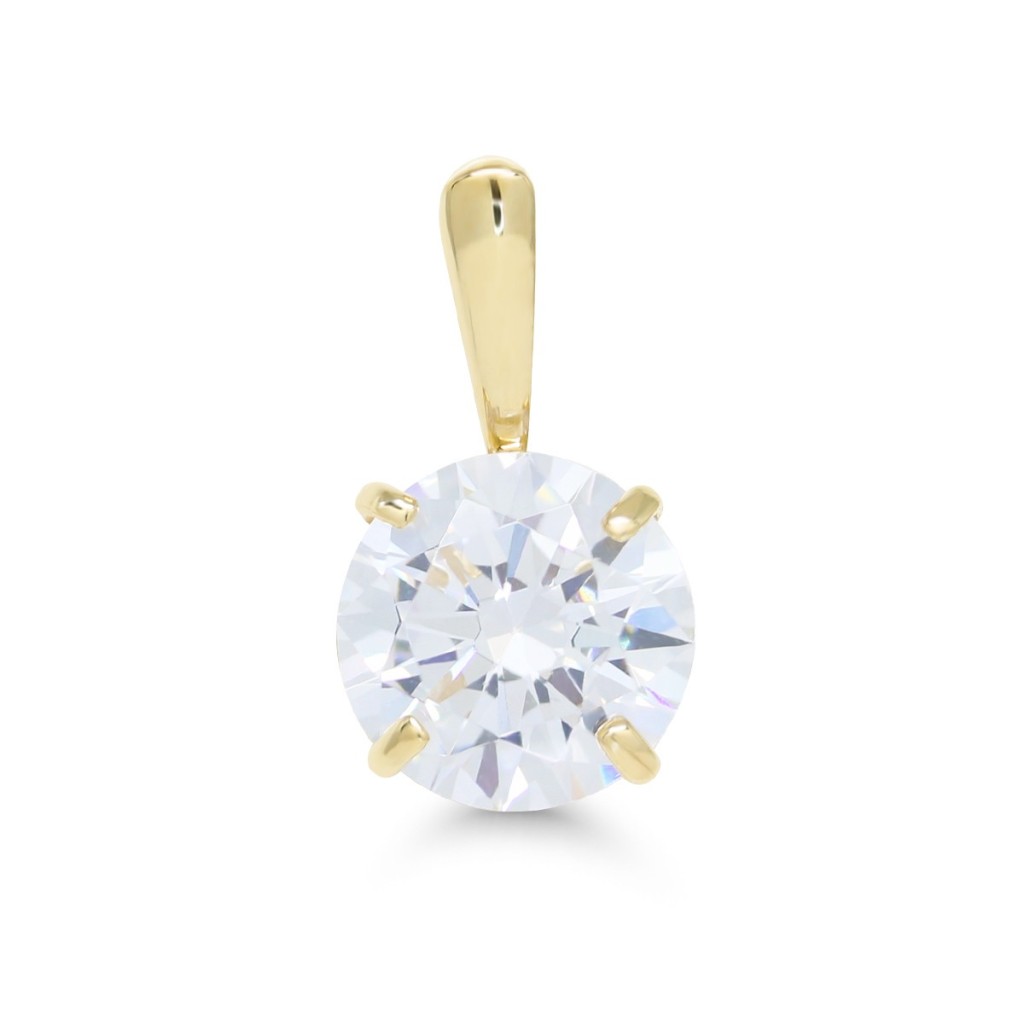 Naisten pyöreän muotoinen kultariipus kirkkaalla korukivellä. Tässä 14 karaatin keltakullasta valmistetussa riipuksessa säihkyy zirkonia. Huomioithan, että riipus ei sisällä ketjua.