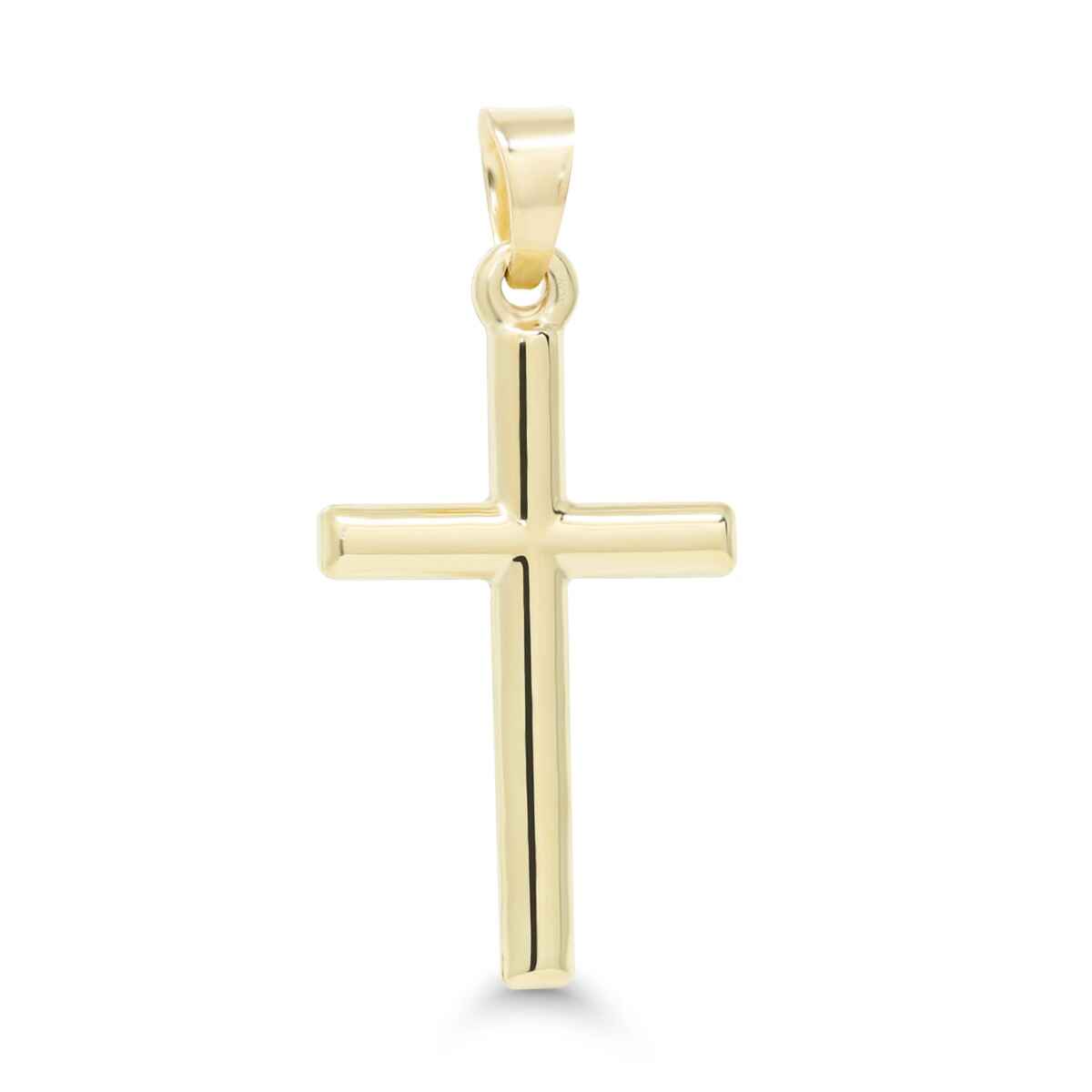 Klassinen keltakultainen ristiriipus sileällä pinnalla. Ristin leveys on 11,8 mm ja korkeus ilman riipuslenkkiä 18,5 mm ja riipuslenkin kanssa 24 mm. Valmistusmateriaali on laadukas 14 karaatin keltakulta. Riipus ei sisällä ketjua. Sopii erinomaisesti rippiristiksi!