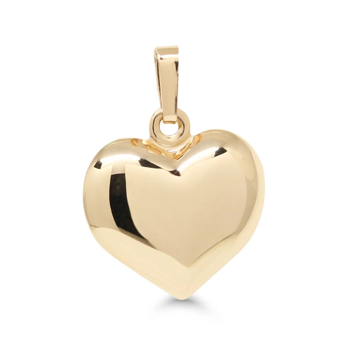 Klassisen kaunis sydämen muotoinen kultariipus sileällä ja kiiltävällä pinnalla. Riipuksen leveys on 15 mm ja korkeus 15 mm, riipuslenkin kanssa korkeus on 20 mm. Valmistusmateriaali on laadukas 14 karaatin keltakulta.