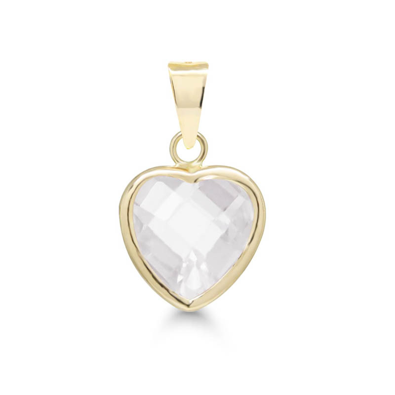 Keltakultainen sydänriipus kirkkaalla sydämen muotoisella synt.zirkoni kivellä.