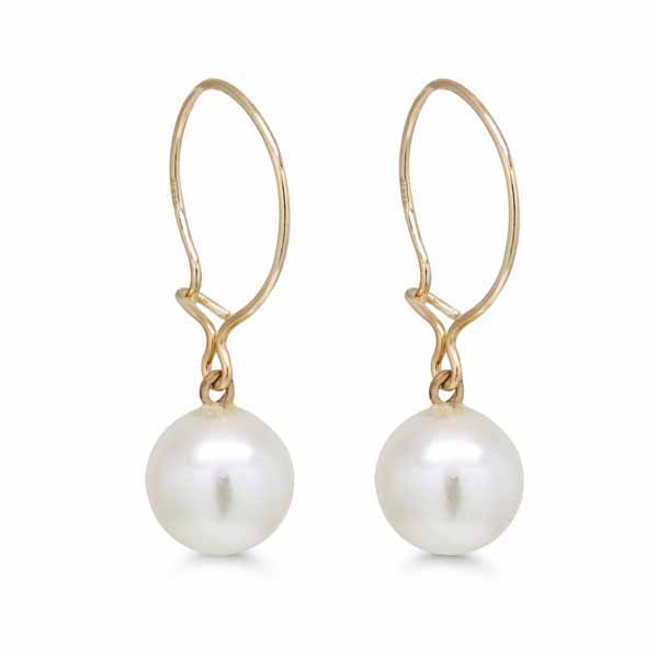 Kultakorvakorut 14k keltakultaa, joissa heiluvat synteettiset helmet.